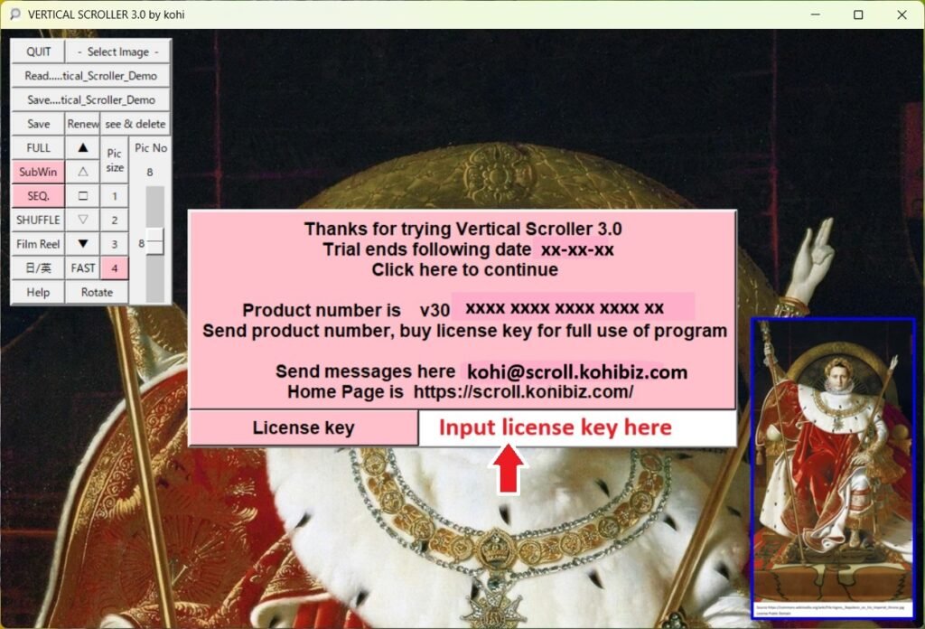 Install 1) Click “Downloaf File” in Download Folder 2) Install program as shown below (Click following images for enlarged view) 1) Agree to license 2) Select folder to install 3) Create desktop shortcut (optional) 4) Install 5) Install 6) The welcome page 7) The first image 8) Installing license key Use program for 2 weeks free. Then buy license key for full use. BACK NEXT